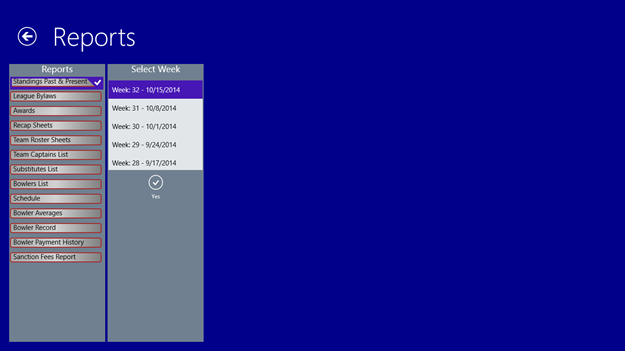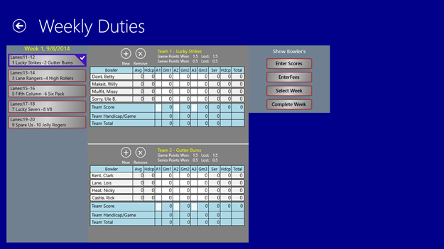 You can print weekly recap sheets to be used by the team captains to record the results of this week's bowling.
