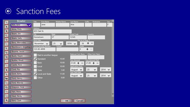 The Bowling Center Button allows you to enter name and address information about your bowling center.