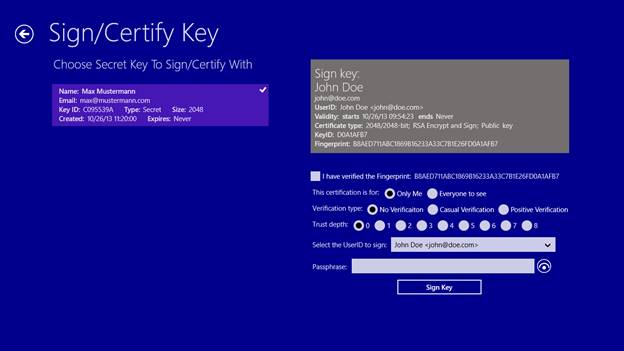 Complete the form and click the Sign Key button. The key will be signed and you will be return to the Key Manager screen.