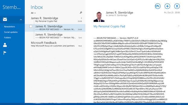 When you receive an openPGP message in Windows Mail, you can share it with My Personal Crypto Pad using the share charm.